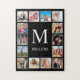 Create your own personalised 14 photo collage, jigsaw puzzle with your custom images on a simple modern black background. The jigsaw puzzle face also features your monogram and name. Add your favourite photos, designs or artworks to create something really unique.