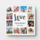 Create your own personalised 12 photo collage, plaque with your custom images on a simple modern white background. The plaque face also features your family name, established year and a "Love" handwritten script. Add your favourite photos, designs or artworks to create something really unique.