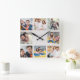 Custom Family Photo Collage Rustic Modern Wood Square Wall Clock