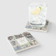 The coasters are gorgeous, a quality feel and heavy weight. They look like a precious archeological find. A rustic stone juxtaposed with a modern floral black and white print. I like the way the print goes slightly imperfect on the cut stone edges giving them a kind-of natural beauty.