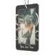 Custom Family Photo Modern Script Black air freshener. Modern design in black and white colours with abstract white circles on a black background and a photo template. Personalise with your favourite family photo and add any text you like. Great as a keepsake or a gift.