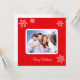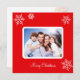 Custom family photo and snowflakes on red Christmas Greeting Card.