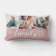 Custom Family Pink Heart Script 3 Photo Collage Lumbar Cushion
