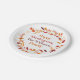 This beautiful autumn family Thanksgiving party plate features a pretty wreath of brown, orange, and red leaves around your personalised text. Customise these matching plates for the entire group with your last name and year in lovely fall colours.