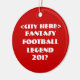 This ornament is perfect for anyone that is considered to be a fantasy football legend, all you have to do is add your city or town name and the year. This makes a great Christmas gift or commemorative keepsake for a great season of fantasy football.