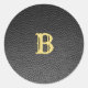 Custom Faux Black Leather Monogram Classic Round Sticker