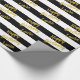 Custom Faux Gold Script on Black and White Stripes Wrapping Paper