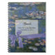 Lovely spiral notebook with Claude Monet's painting Water Lilies as the background. Graphics of a gold tone edged text field and lovely graphics of a lavender satin looking ribbon finishes off the colorful guest book. Black text is ready to personalize for your wedding. Matching wedding products available, see links below.