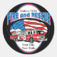 Big American flag background in front of a big red firetruck with blue Fire and Rescue text above! Edit the text and personalise this firefighter design! Upper and lower text can be edited! Add your fire department name, number or town/city name! Add the name of your favourite firefighter to create the perfect custom firefighter gift!