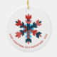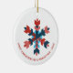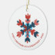Custom First Christmas As A Godfather Snowflake Ceramic Ornament. Personalise with your custom information on both front and back.