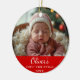 Personalise with baby's name, the year, and one photo on the front and one on the back to create a baby's first Christmas keepsake ornament and gift for a first Christmas.