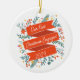 Custom First Christmas Engaged Festive Red 2024 Ceramic Ornament