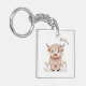 Personalised first name rustic cute modern boho highland cow on white background keychain, perfect as a thoughtful gift or for a girly party favour.