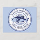 Customise this family fishing shop grand opening postcard for a fish and tackle shop to use for store marketing. A cool periwinkle and navy blue fisherman design with an open mouthed bass and your custom text or last name.