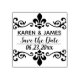 Stylish, "Save the Date," custom rubber stamp. Elegant Fleur De Lis scrollwork, top and bottom. Space in the centre to add the couples name, and also the date of their big day. Use the stamp when mailing Wedding invites, cards, announcements etc.