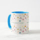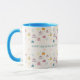 birthday gift coffee mug, whimsical fireworks mug, fun birthday mug design, hand drawn cake mug, colourful celebration mug, cream party theme mug, personalised name mug birthday, cheerful coffee mug gift, cute birthday doodle mug, floating cakes design mug