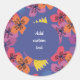 Custom blue floral sticker for packaging, label, books, notebooks, school. Pretty blue feminine round sticker with colourful floral pattern. Personalise floral blue sticker with name, adress, message for birthdays, gifts, products, business or personal use. Blue sticker for women, girls, mothers, friends, teachers.