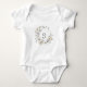 Dress your little one in style with our personalised floral monogram baby bodysuit. This adorable suit features a crisp white background, beautifully highlighted by a delicate wreath of white and cream flowers surrounding a customisable initial. It's the perfect combination of elegance and comfort, ideal for everyday wear or special events.