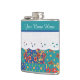 Custom Floral on Teal, Faux Lace Hip Flask