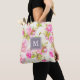 Custom Floral Pattern Old Rose Monogram Tote Bag
