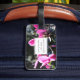 Pretty floral luggage tag, with pink blooms on both sides. Customise with any personal ID you wish on the back.