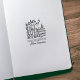 This "From the Library Of" rubber stamp features a vintage cat on top of floral books with custom name.