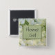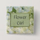 Easily customise this bridal button to flower girl's name or whatever text you would like. Perfect for bridal showers, brunches or receptions. White hydrangea flowers in the background with sage green pin stripe accent.