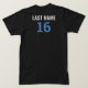 Design features script "Football" wording with text that can be customised for the team name, player last name, and jersey number. White, blue, and grey colours can be customised.