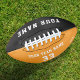Custom Football with Name, Number and Team Name. Personalise it with your name, team name, number and the year - optional. The text is a trendy white typography on an orange and black background. You can change any text on the football or erase it. A perfect gift for football players, teammates, coaches, your friends and family. Great keepsake to remember your favourite sport.