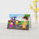Custom Front, Congratulations on Teacher Retirement, paper greeting card. A happy and smiling teacher is thinking about retirement and has a thought bubble "RETIREMENT! I'm leaving EVERY child behind." A funny take on the educational No Child Left Behind Act. Add a special retiring teacher's name to the cover for a custom and personalised card. Clipart elements courtesy of Openclipart. Copyright ©Shoaff Ballanger Studios.