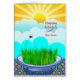 Custom front, add your text to this Happy Norooz / Nowruz greeting card for a sister, with an illustration of the new year / spring sunrise over a bowl of sabzeh, wheatgrass. The grass has a long blade with a ladybug sitting on the end of it. Also features a table decorated with an ornate tile pattern. Various clip art elements from Openclipart. Art, image, and verse copyright © Shoaff Ballanger Studios. Eid-eh Shoma Mobarak! message inside.