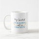 Fun coffee or orange juice mug for gramps with cute My Greatest Blessings Call Me Grandpa text in an elegant vintage dark teal blue coloured typography script font, decorated with pretty laurel leave branches. With option to customise or personalise with grandpa's name or his grandchildren's favourite nickname, and to adjust text.