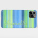 Contemporary dark, pastel, and bright azure blue, aqua turquoise, and vibrant lime green coloured striped watercolor pattern. With room to customise or personalise with a name, monogram, or initials of your choice. Beautiful, modern, and cool cover for the trend-savvy and art-loving hip trendsetter, artsy motif lover who wants to protect their phone from dust and dirt, wear and tear. This design is available in Apple iPhone 6, 7, and 8 Plus, 10 or X, XR, XS, 11, 12, 13 Mini, 14, 15 Plus, and Pro Max cellphone cases. Show off your style, look fashionable trendy, and feel stylish with a unique design on a mobile device accessory of your choice.