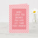 Cute greeting card with a funny quote for the love of your life, husband or wife, boy- or girlfriend, or even your mum or dad, on a violet purple and white coloured polka dots background. With the option to customise with name, word, or (limited) text of your choice. Let those with a sense of humour know that you love them to the moon and back with this sarcastic and humourous 'I LOVE YOU BECAUSE YOU SUCK LESS THAN MOST OTHER PEOPLE' quote.