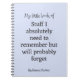 This funny personalised notebook features the text "stuff I absolutely need to remember but will probably forget" with your custom name below on different gender neutral backgrounds! Pick a colour and personalise by editing the name in the text box provided! It's the perfect gift for anyone with a sense of humour and a busy mind. Use it for jotting down to-do lists, reminders, important notes, brainstorming ideas, or even daily thoughts!