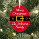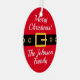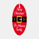 Custom funny Santa belly Merry Christmas tree Ornament. Fun design with personalised text. Cute Holiday gift idea for friends, family, coworker, colleague, boss, employee, staff, personnel, teacher, coach etc. Oval shape with big black Santa Claus belt. Upload your own picture or photo on the back optionally. Double sided print.