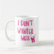 Adorable, funny, stylish coffee mug saying "I don't winter well" in hand written typography with the cutest dog cartoon, original drawing ©Marisu Valencia on a coffee mug. Personalize with name on one side. Perfect gift for the awesome coworker, buddy, bestie, boy-friend or girl-friend. Available in a variety of interior colors.