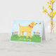 Funny Yellow Dog Spring Greeting Card with funny inside quote: " When the flowers bloom,