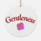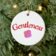 Add a stylish touch to your holiday décor with this customizable Christmas ornament. Featuring bold red typography on a clean white background, accented with a soft pink flower, it’s designed with editable text — shown here as Gentleness (you can change it to your own word). Perfect for a modern, personalized holiday tree or a thoughtful gift.