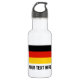 Personalized German flag stainless steel water bottles for Scandinavia. Custom shiny metal water bottle in many colors. Great for sports teams and outdoor activities. ie basketball, baseball, football, tennis, soccer, volleyball, hiking, walking, camping, running, track and field, travel etc. Personalize with your own name, jersey number, initials or slogan in big letters. Cool modern typography. Suitable for sporty men women and kids ( boys and girls). Germany pride. Add your own name, photo or logo design. Upload your image to this template.