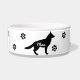 This bowl features a custom pet name with paw prints and a German Shepherd silhoutte.
