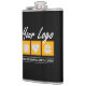 The flask itself is fine. It’s a cheap flask, obviously bought in bulk, however am prepared to overlook that. Given that it is a personalized item, I would have liked to have seen gift boxing instead of the generic packaging. Terrible printing, and/or quality. It’s a cheap, tacky vinyl. It is not cut straight and is also applied in a way that it is overhanging the bottom, causing the glue to catch on items and it will eventually roll and tear, damaging the wrap.