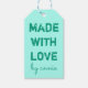 Custom teal gift tag. The font style and size can be changed by clicking on "customise further."