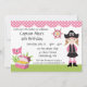 Arrrgh, mateys. This cute pirate birthday party invitation features a girl pirate dressed in pink and black and a pink treasure chest. Completely customisable.