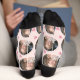 You can show your love for your friend, husband, or partner with these fun and cosy custom-printed socks. This design features a pattern of your own favourite photo along with small cute pink skitch confetti hearts on blush pink background. You can create your own by adding your picture to the round placeholder image. This will be a perfect personalised gift idea and stocking stuffer.