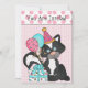 Sweet girl's birthday invitation done in lovely pastel colours and adorable graphics of a skunk, with balloons and gifts. Set on a whimsical background of pink and white polka dots and checks this cute invitation is perfect for any girls big day. Personalise the text, on the front and back of the invitation to suit your needs.