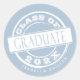 This girly dusty blue graduate sticker features a white "class of" wording inside a circle that looks like a stamp. Simply enter your name and graduation year. Use it as a graduation party favour decor sticker or envelope seal.