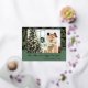 Unique, classy, trendy, pretty and decorative seasonal Christmas Holiday and Happy New Year greetings card. With room to customise or personalise with a photo, family name or names, and text of your choice. Cute golden and forest green leaves, and foliage branches pattern on a light slate teal blue background. And a customisable season greeting poem on the backside of the card, including your return address, city, zipcode and state.