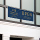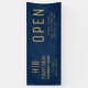 Make your business stand out with a custom banner featuring your company logo in a minimalist gold monogram design. Set against a sophisticated blue patterned backdrop, perfect for trade shows, events, storefronts, or office branding. Fully customisable.