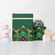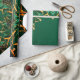 "Add a touch of elegance to your gifts with this luxurious wrapping paper, featuring intricate gold foil-like patterns on a rich emerald green background. Inspired by the timeless Art Deco style, this design offers a festive holiday vibe, perfect for special occasions. The design includes a customisable area where you can add your own greeting or message, making it an ideal choice for personalised gifts. Wrap your presents in style and make every occasion memorable with this unique and festive wrapping paper."